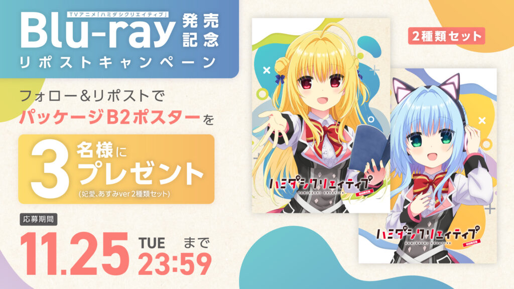 TVアニメ「ハミダシクリエイティブ」Blu-rayの発売を記念し、 リポストキャンペーンを開催中です!
