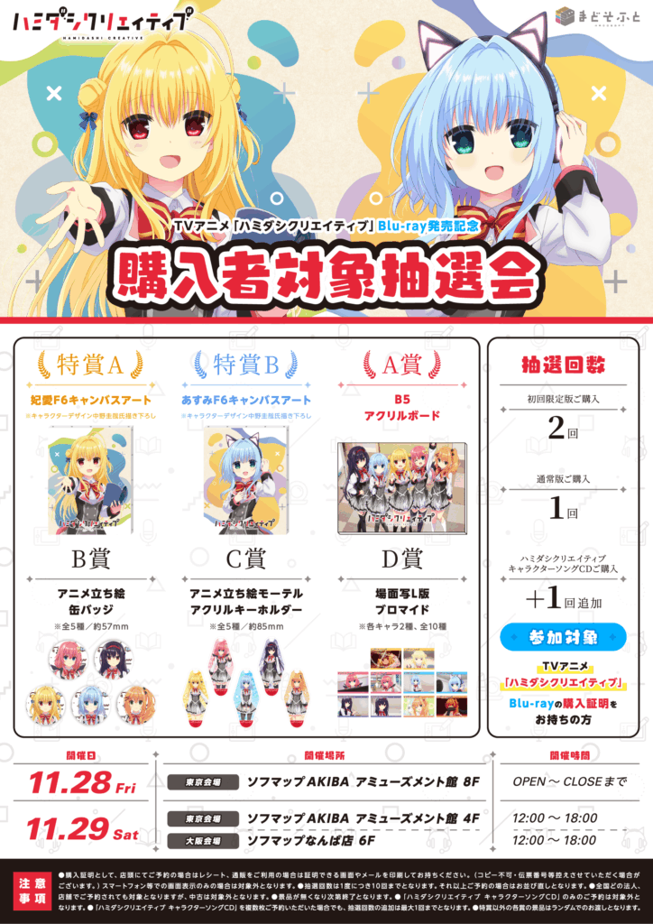 TVアニメ「ハミダシクリエイティブ」Blu-ray発売を記念して、購入者対象抽選会を開催いたします!