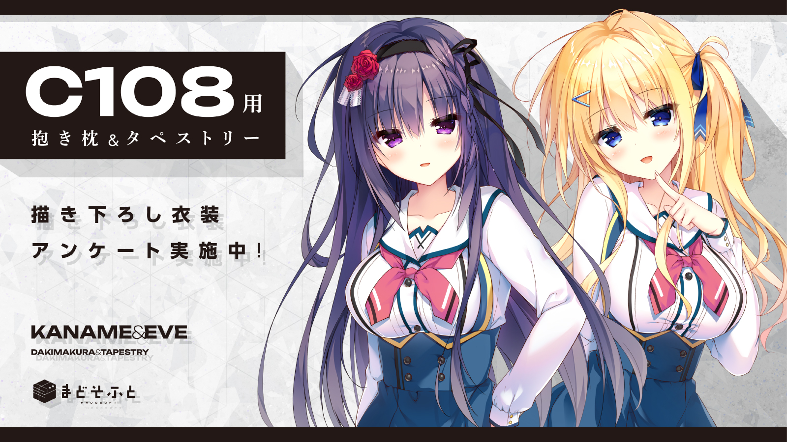 2026年8月に開催予定のコミックマーケット108にて 奏命の抱き枕カバーとイヴのタペストリーの制作が決定いたしました!