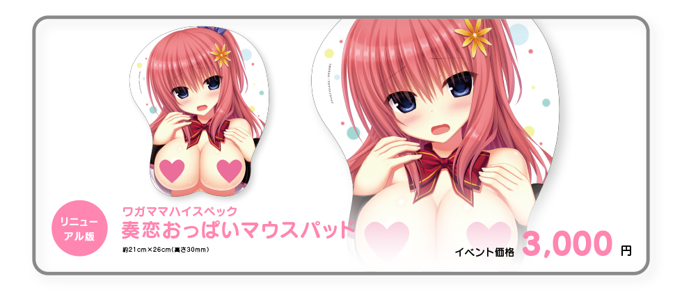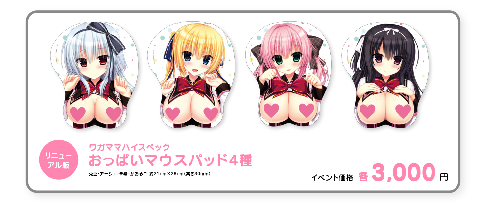 まどそふと「ワガママハイスペック」より「各キャラのおっぱいマウスパッド」「まどそふと秘蔵在庫グッズ」を販売予定です。