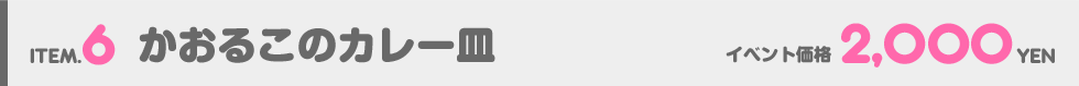 可愛い絵柄はもちろんのこと、本格的な仕様で耐久性・実用度もバッチリ! [商品名] かおるこのカレー皿 [サイズ] 約23cm×21cm×深さ5cm [素材] 陶器・耐酸コート [イベント価格] 2000円(税込) [販売] C89初出 ※画面環境などによっては実際の商品と色味が異なる場合があります |