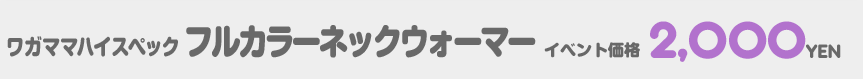 ワガママハイスペックより「ネックウォーマー」が初登場! 可愛い絵柄はもちろんのこと、A&J製・スムース+フリース素材で実用度もバッチリ! [商品名] ワガママハイスペック ネックウォーマー [サイズ] フリーサイズ [素材] A&J製・スムース+フリース素材 [イベント価格] 2000円(税込) [初出] C91 ※画面環境などによっては実際の商品と色味が異なる場合があります |