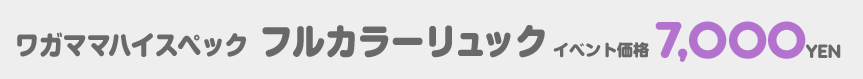 ワガママハイスペックより「フルカラーリュック」が初登場! 普段使いが出来るデザインで実用度もバッチリ! [商品名] フルカラーリュック [サイズ] 約W30cm×H40cm×D16cm [イベント価格] 7000円(税込) [初出] C91 ※画面環境などによっては実際の商品と色味が異なる場合があります |