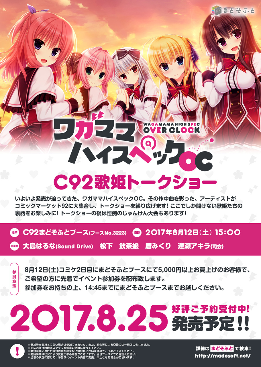 「全国キャラバン in C92」や「歌姫トークショー」等のイベントも計画しておりますのでご来場の際には是非「まどそふと」ブースへお立ち寄りください!