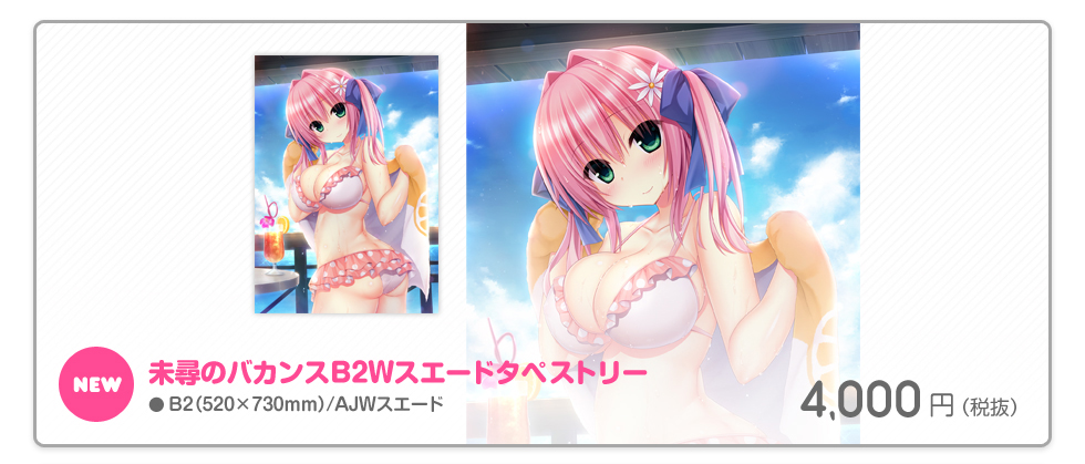 最新作「ワガママハイスペックOC」より本ショップ初出の描き下ろし「未尋のバカンスB2Wスエードタペストリー」を始めとした完全新作アイテムに、加え「Gift」様からも新作アイテムを多数販売致します!