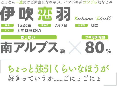主人公の幼なじみ。中学に上がる時に家庭の事情で引っ越す事になり、